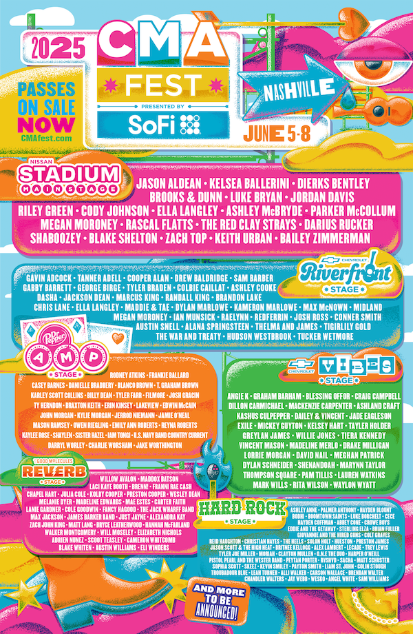 Im Nissan Stadium wird es wieder unzählige Überraschungen geben. Nie zuvor gesehene Kollaborationen und Überraschungsauftritte von einigen der größten Stars der Country-Musik werden wieder zu erleben sein. Die diesjährige Besetzung listet Namen wie Jason Aldean, Kelsea Ballerini, Dierks Bentley, Brooks & Dunn, Luke Bryan, Jordan Davis, Riley Green, Cody Johnson, Ella Langley, Ashley McBryde, Parker McCollum, Megan Moroney, Rascal Flatts, The Red Clay Strays, Darius Rucker, Shaboozey, Blake Shelton, Zach Top, Keith Urban und Bailey Zimmerman. Weitere Künstler werden in den kommenden Wochen bekannt gegeben.
