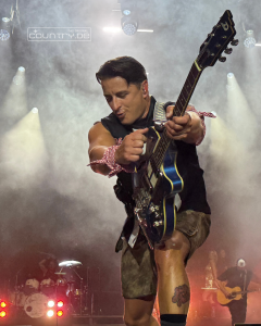 Viele Songs von Gabalier sind mit typischen Countryelementen produziert. Wir konnten einen Blick auf die Setliste des Abends werfen, die auf der Bühne die Reihenfolge der Songs vorgibt, und entdeckten hinter dem Titelangabe „I sing a Liad für di“ den Zusatz „Nashville“. Der Song, mit dem Gabalier 2014 den Durchbruch erreichte, wird in bei Live-Konzerten von Gabalier und Band gerne in einer knackigen Nashville-Version gespielt. Auch das ein Beleg für seine Nähe zur Countrymusik.