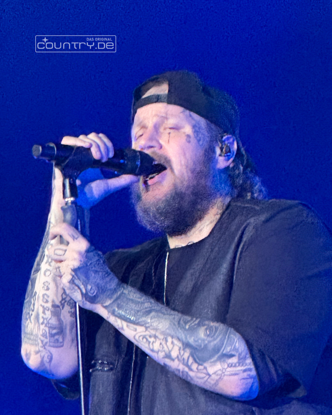 Ein Support Act stand nicht auf dem Programm. Die Fans mussten geduldig draußen warten, da die Türen eine halbe Stunde später als angekündigt geöffnet wurden. Die Vorfreude war spürbar, als Jelly Roll schließlich um 20:30 Uhr mit einer elfköpfigen (11!!!), vielseitigen Band die Bühne betrat, zu der auch ein Pedal-Steel-Gitarrist, ein MC und ein Background-Sängern-Trio gehörten.